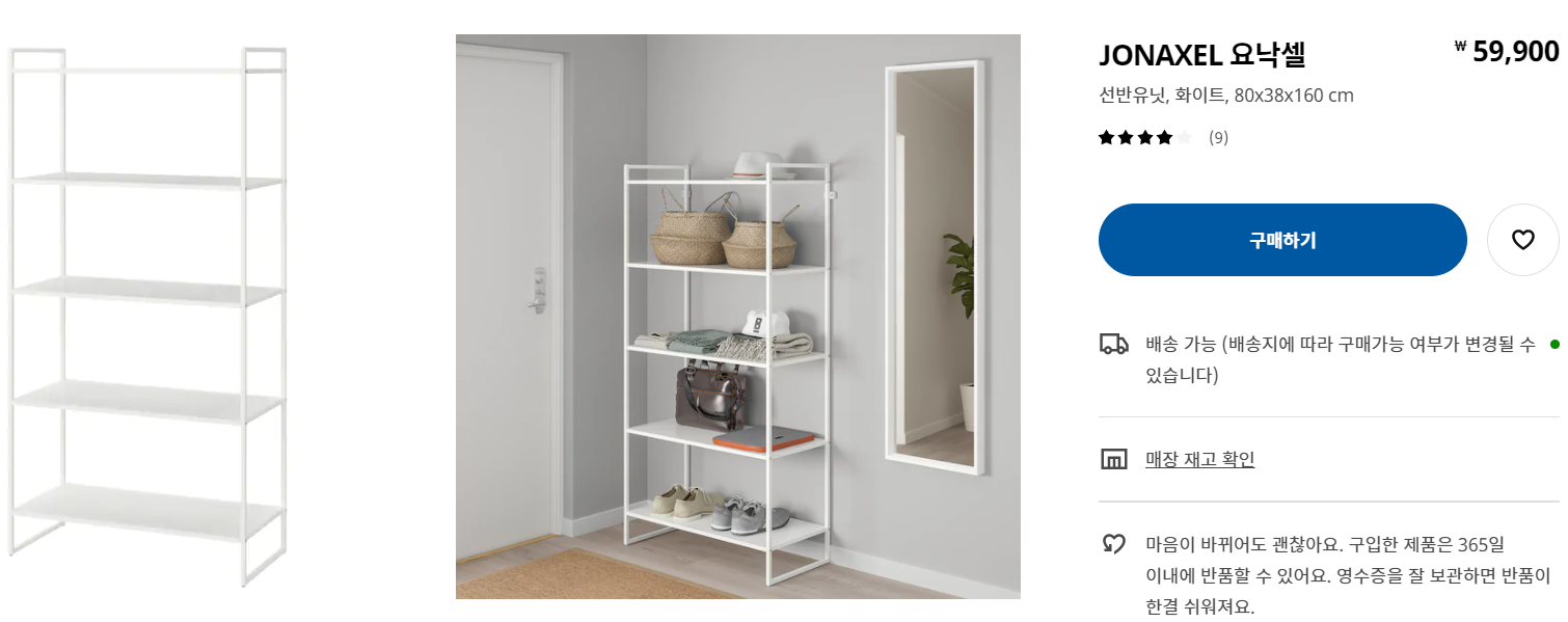 현재 집이 전세라서 계약이 만료되면 이 전세대란 안에 언제든 더 좁은 집으로 이사갈 가능성이 있기 때문에^_ㅠ 위의 칼락스 외에 다른 선반은 어디로든 옮길 수 있는 철제 선반으로 골랐다.