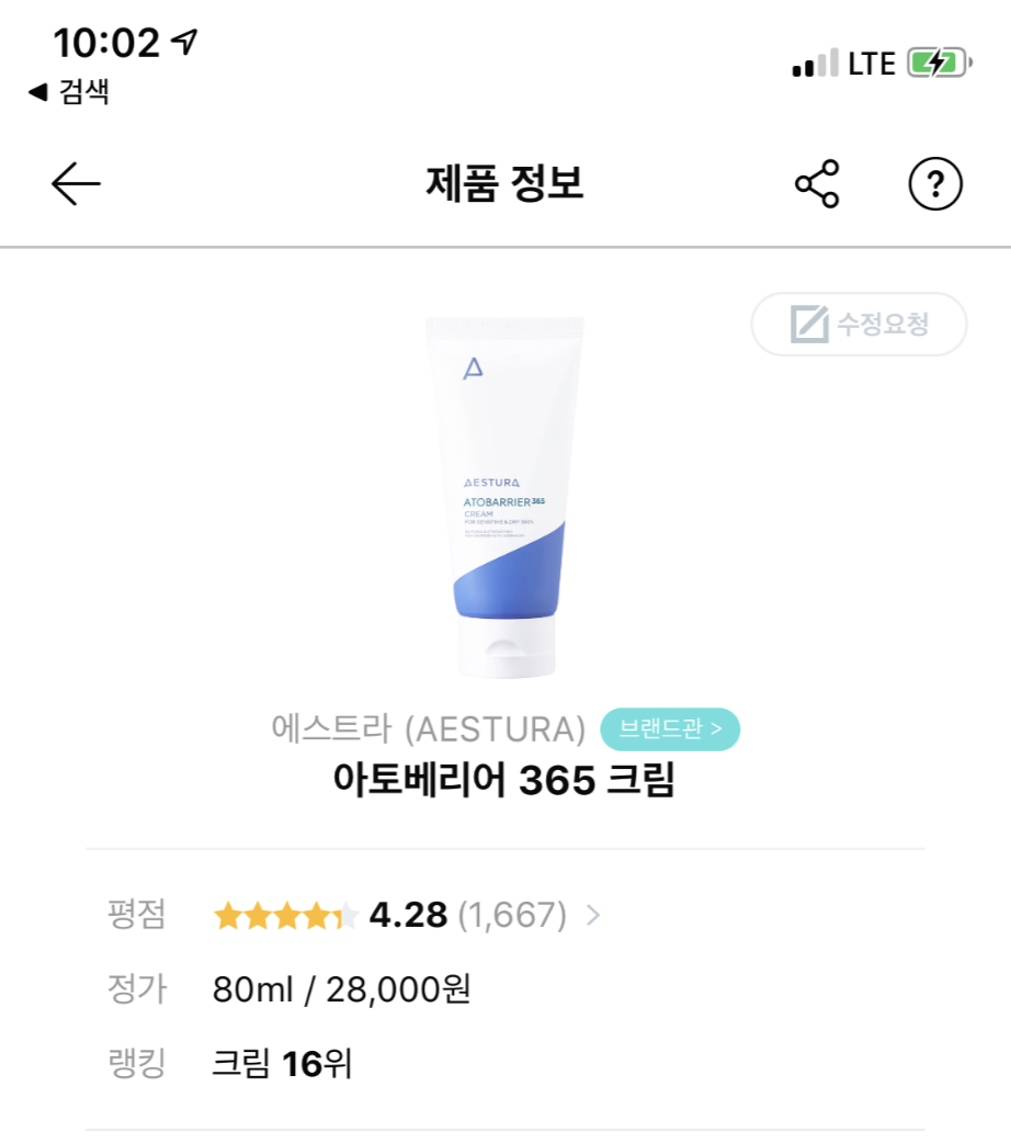 이전에 아모레퍼시픽이 '태평양 제약'이라는 제약사를 가지고있었는데 그 때 개발된 기술을 가지고 코스비전에 oem을 준 것이라고 한다(제약회사 친구 피셜). 나는 하도 피부가 민감해서 늘 화해를 체크하는데 리뷰 1667개 평균 평점이 4.28점이다 ㄷㄷ